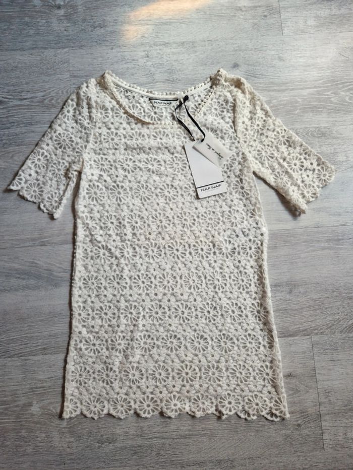 Blouse Naf Naf neuve avec étiquette XS écrue avec broderies fleurs et transparence - photo numéro 1