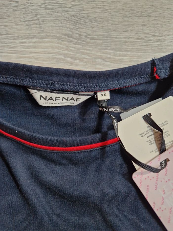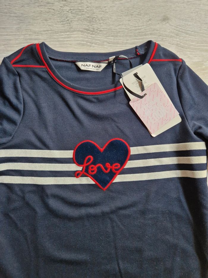 Haut Naf Naf neuf avec étiquette XS cœur bleu marine et rouge - photo numéro 1