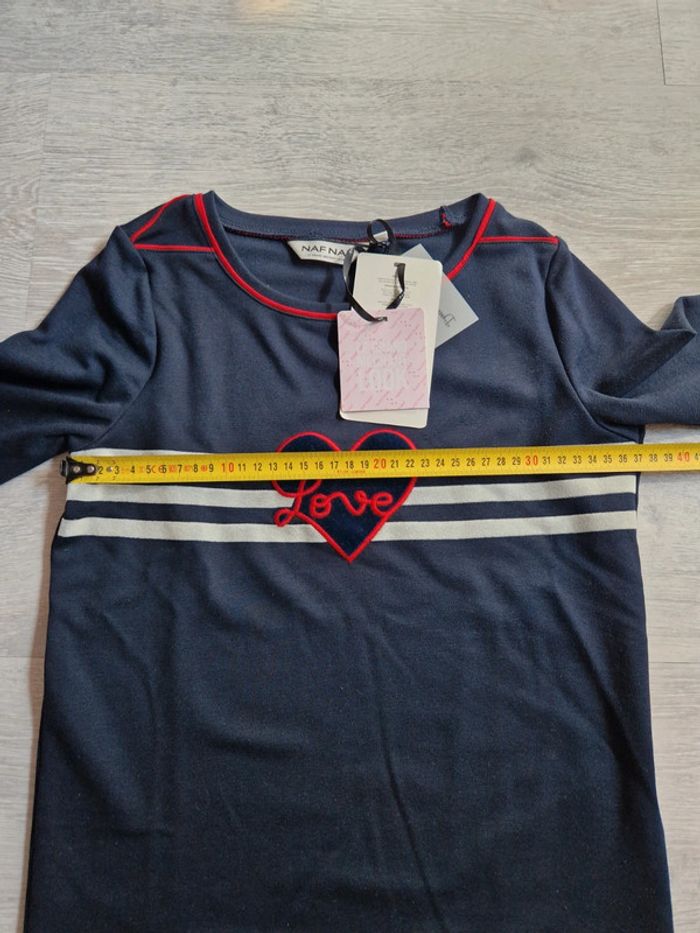 Haut Naf Naf neuf avec étiquette XS cœur bleu marine et rouge - photo numéro 5