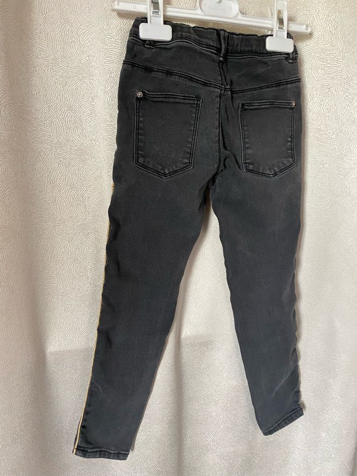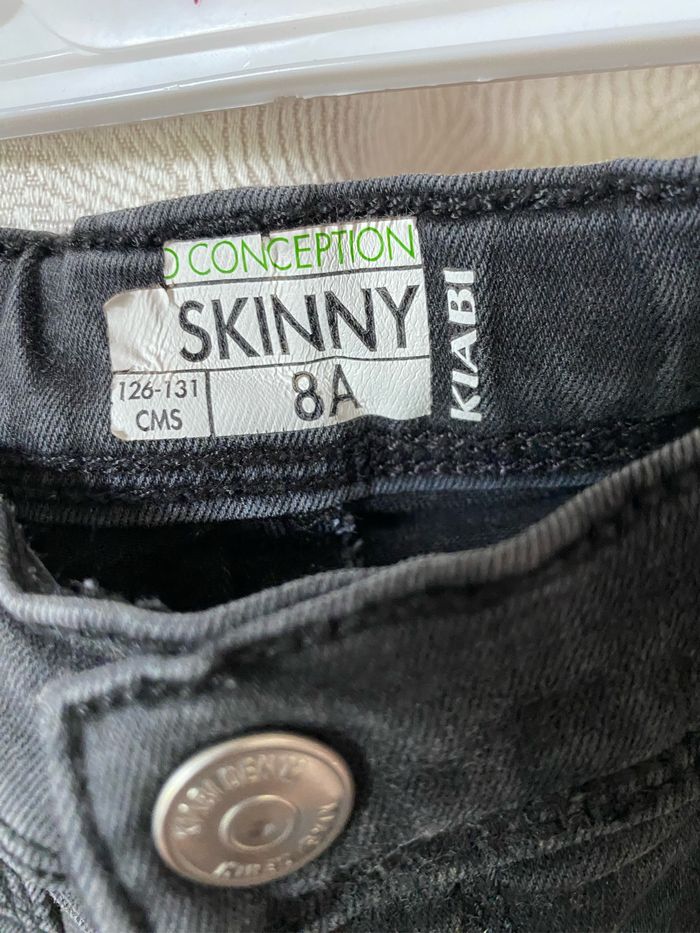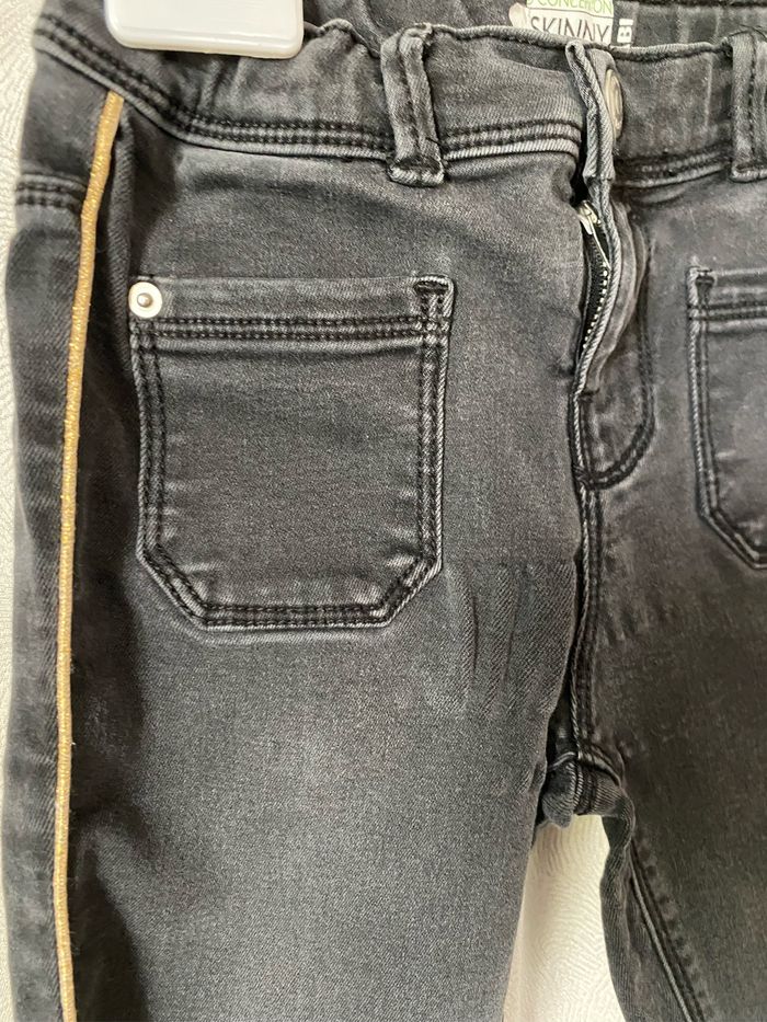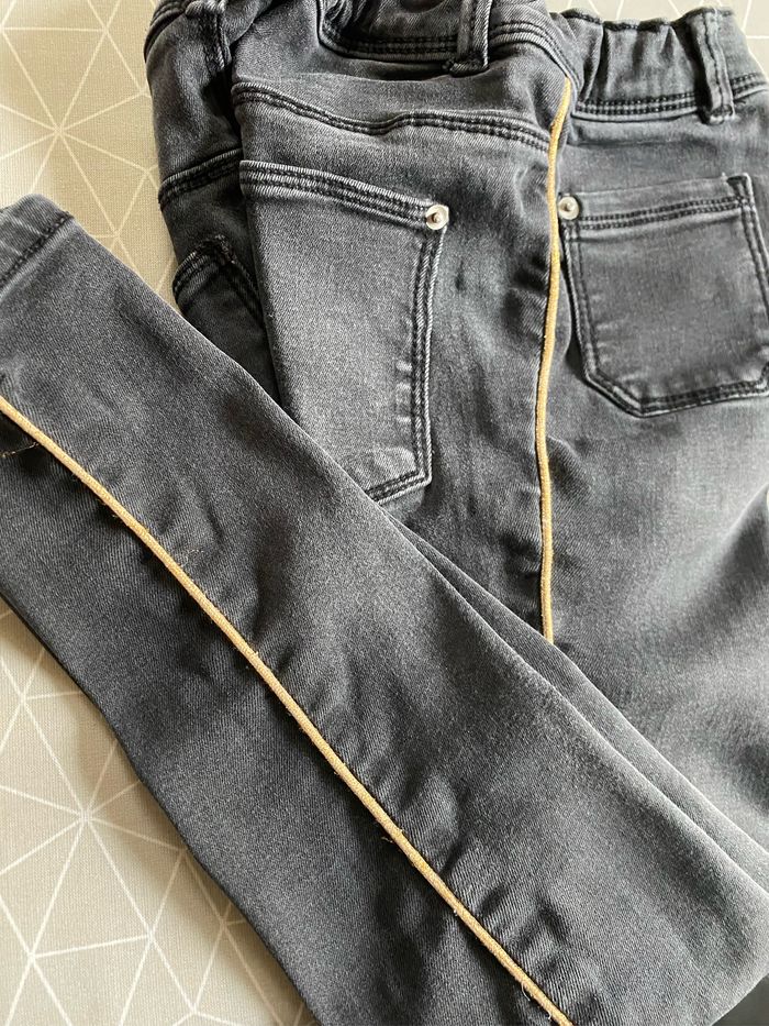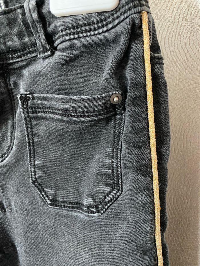 Jeans skinny noir ( passé) biais doré 4 poches plaquées Taille 8 ans 126-131 cm Étiquette de composition coupée, probablement coton et elasthane kiabi