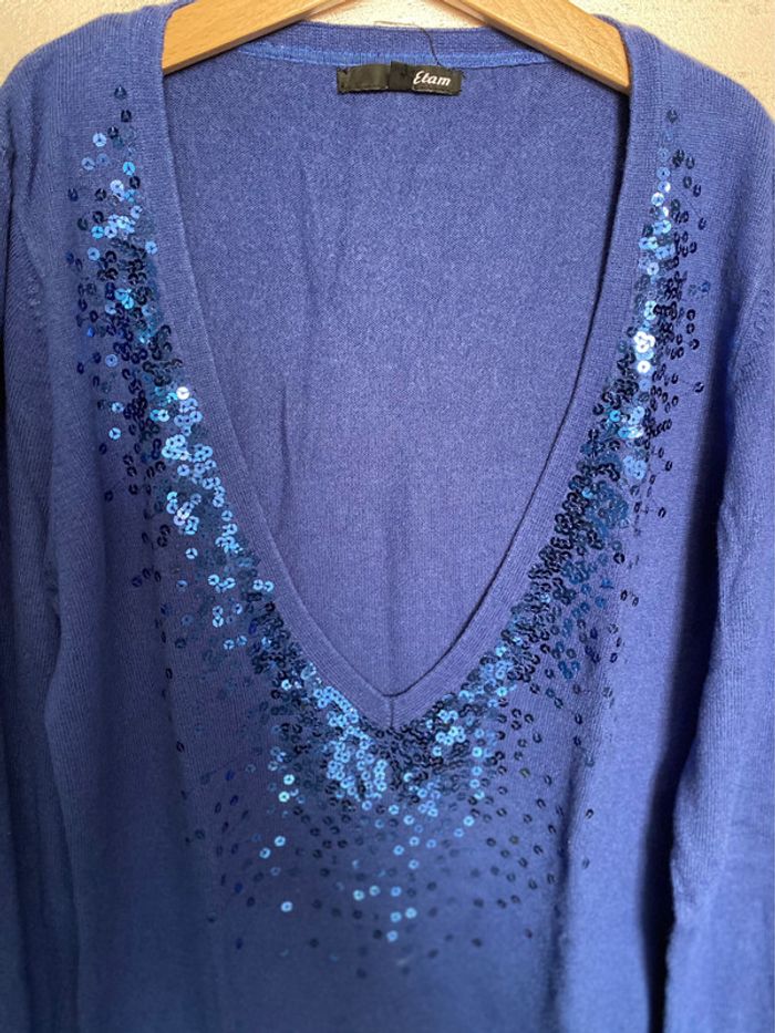 jolie pull bleu brillant bleu dur taille 38 Etam