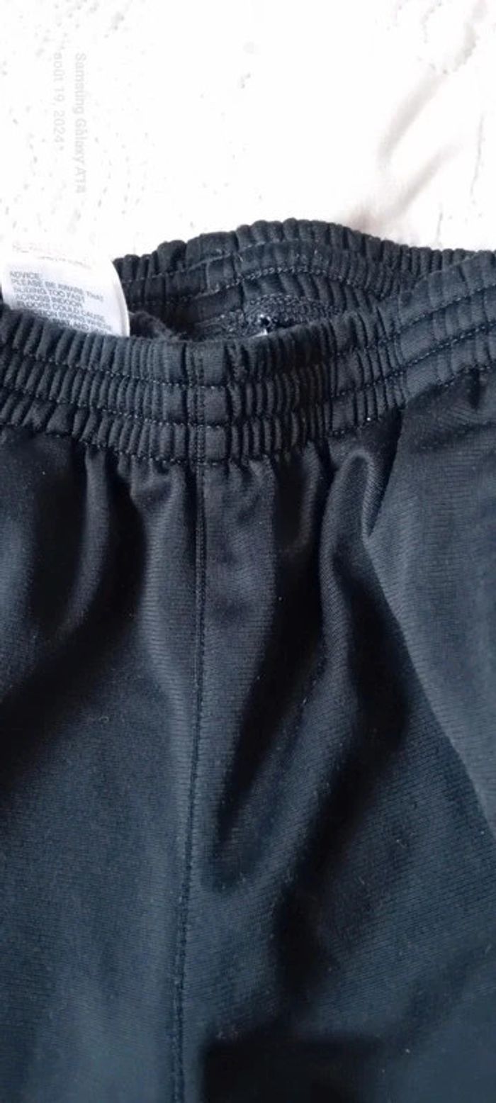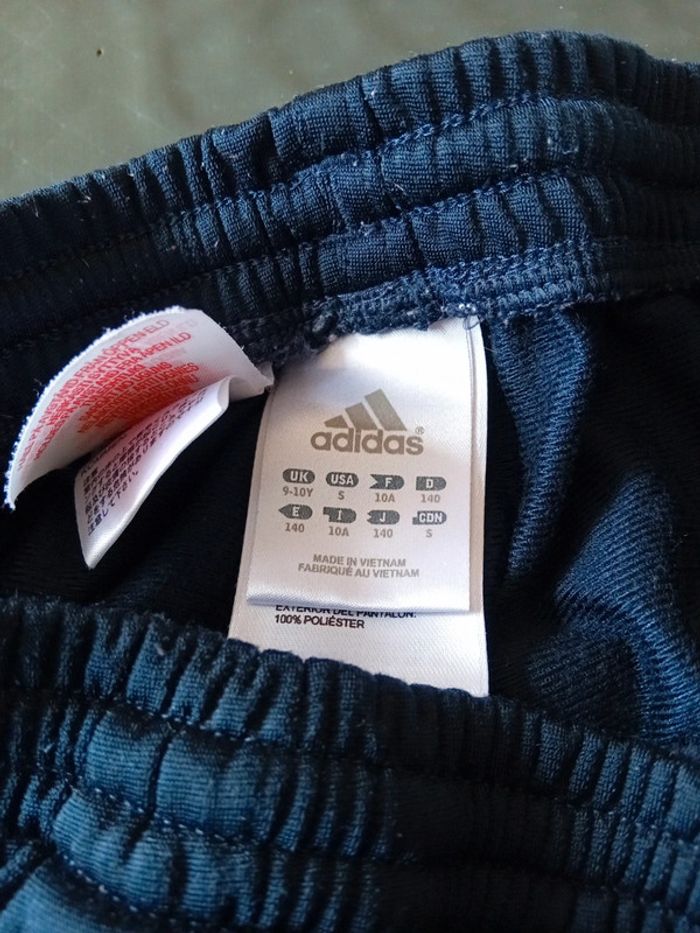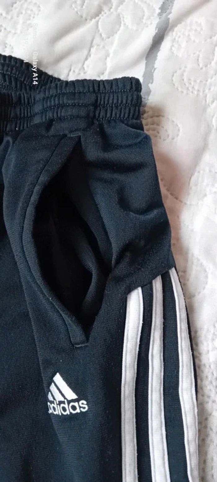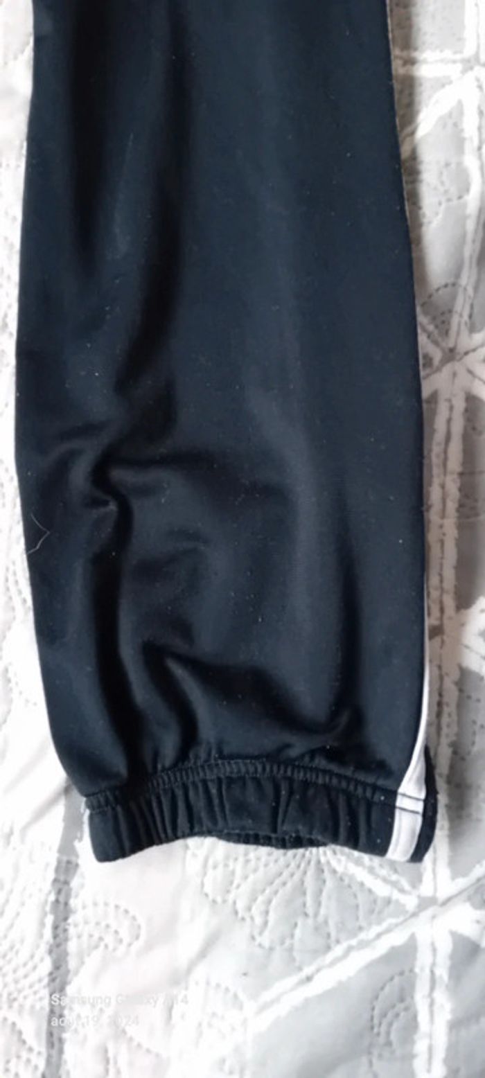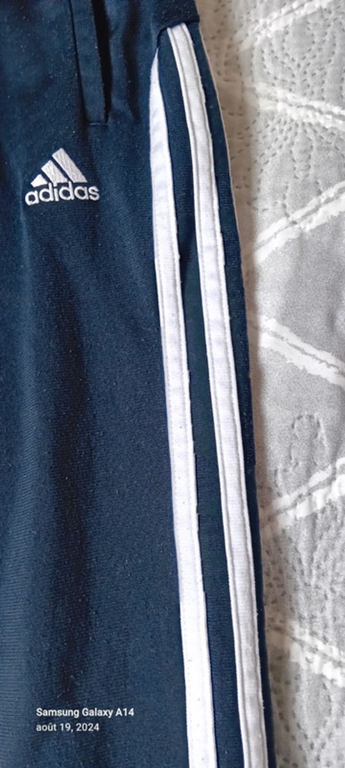 Pantalon de sport en polyester matière fluide et satinée bandes latérales blanches logo Adidas brodé sur le devant fermeture éclair en bas des jambes poches devant taille elastique avec lien à resserer regular droite longueur 85 cm largeur cuisses 23 cm largeur bas de jambe 15 cm porté plusieurs fois en bon état ⚠️ quelques traces d usure et bouloches (voir dernières photos) #midole #midolegarçon #midolesport #midolegarçon10ans #pantalondesport #pantalondesport10ans #adidas #pantalonadidas #garçon10ans #vetementdesport