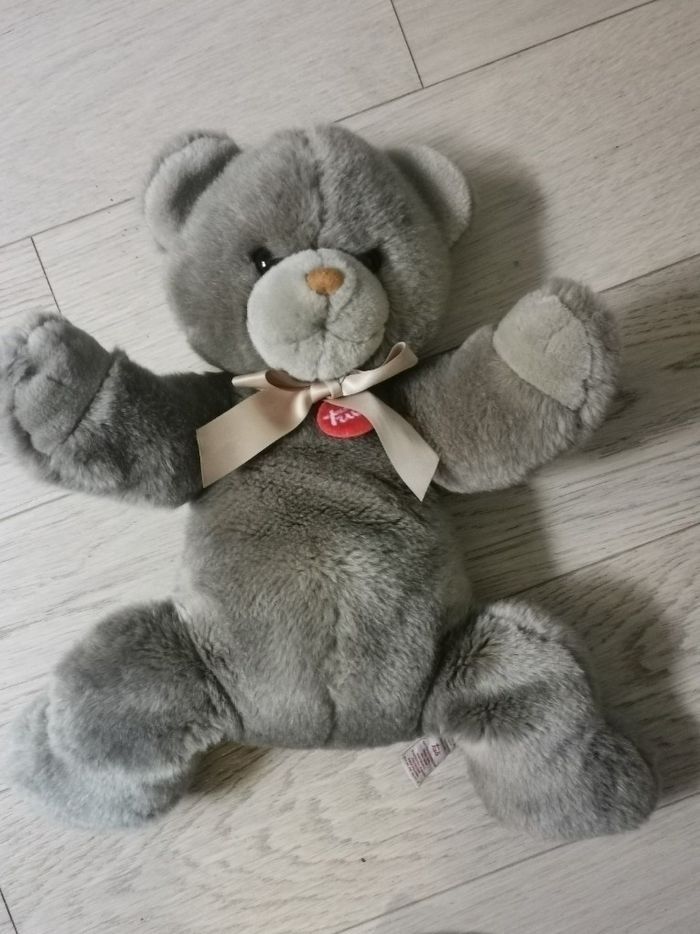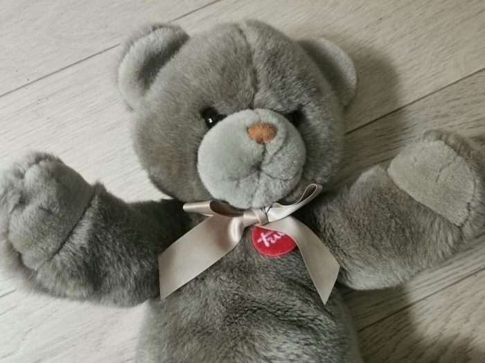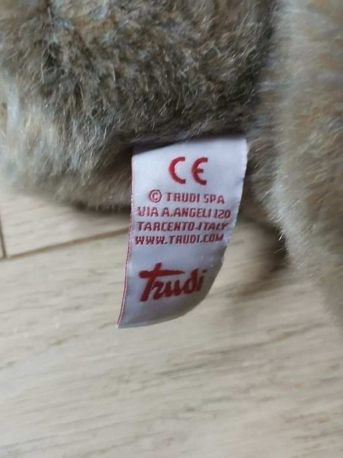 Ours en peluche - Trudi - comme neuf Répond aux normes CE Prix neuf : 52 € Dimensions : L 20 x H 30 x P 20 cm en position assise 39 cm en position allongée Environnement non fumeur Peut être remis en main propre sur Paris, Bibliothèque François Mitterrand, Gare de Lyon, La Défense, Etampes