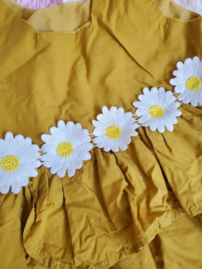 🌴 Robe d'été moutarde à volant avec pâquerettes fleur blanche taille 12 mois - photo numéro 2