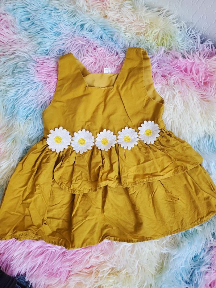 🌴 Robe d'été moutarde à volant avec pâquerettes fleur blanche taille 12 mois - photo numéro 1