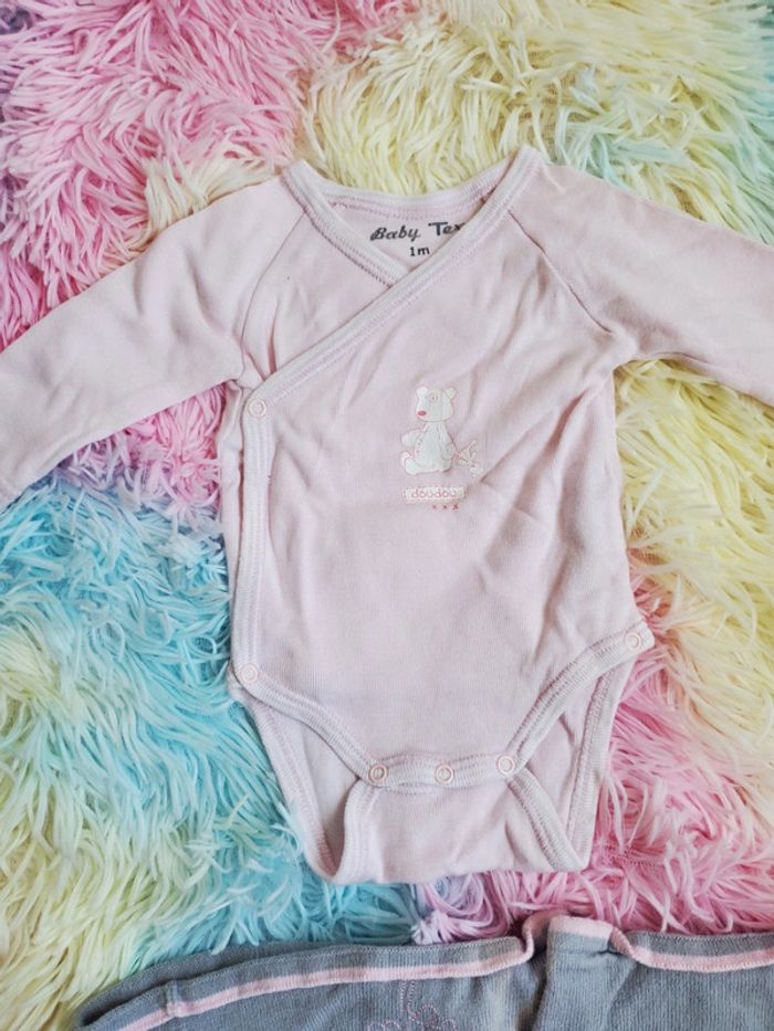 🌴 Ensemble rose gris rose et body manche longue bébé fille 1 mois - photo numéro 1