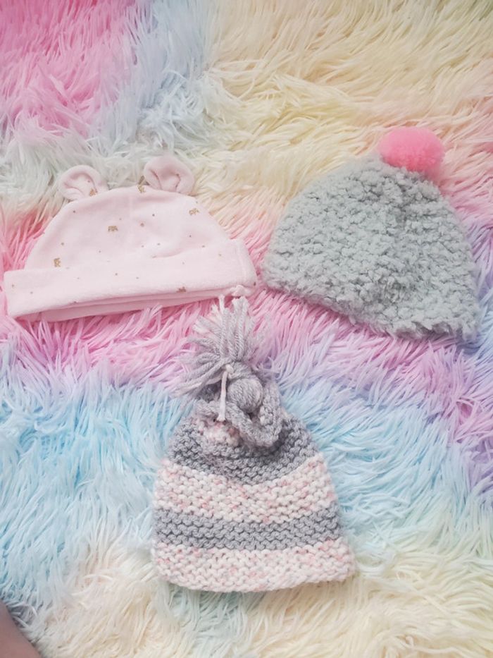 🌸 Lot de 3 bonnets de naissance dont 2 fait main