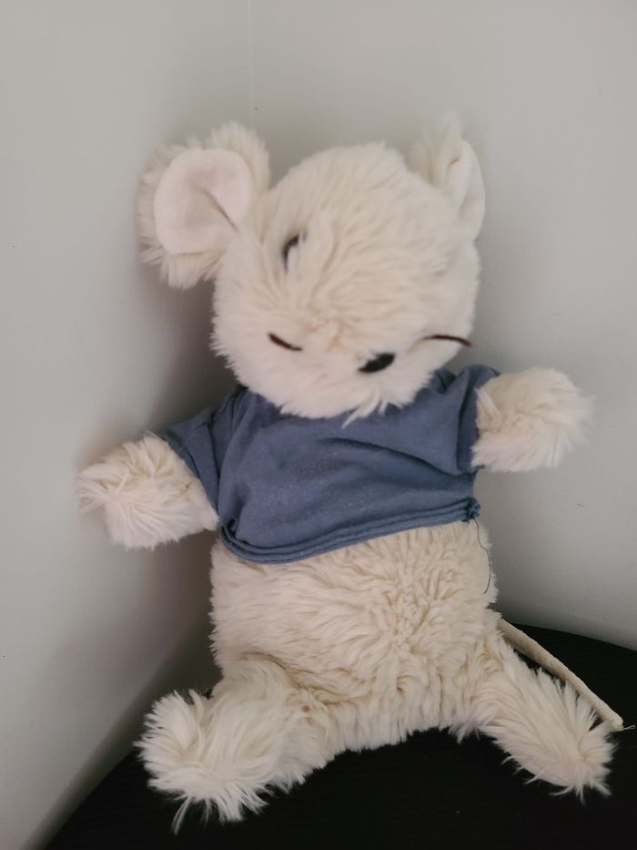 DOUDOU ET COMPAGNIE PELUCHE RAT SOURIS BLANC ECRU MAILLOT BLEU - photo numéro 4