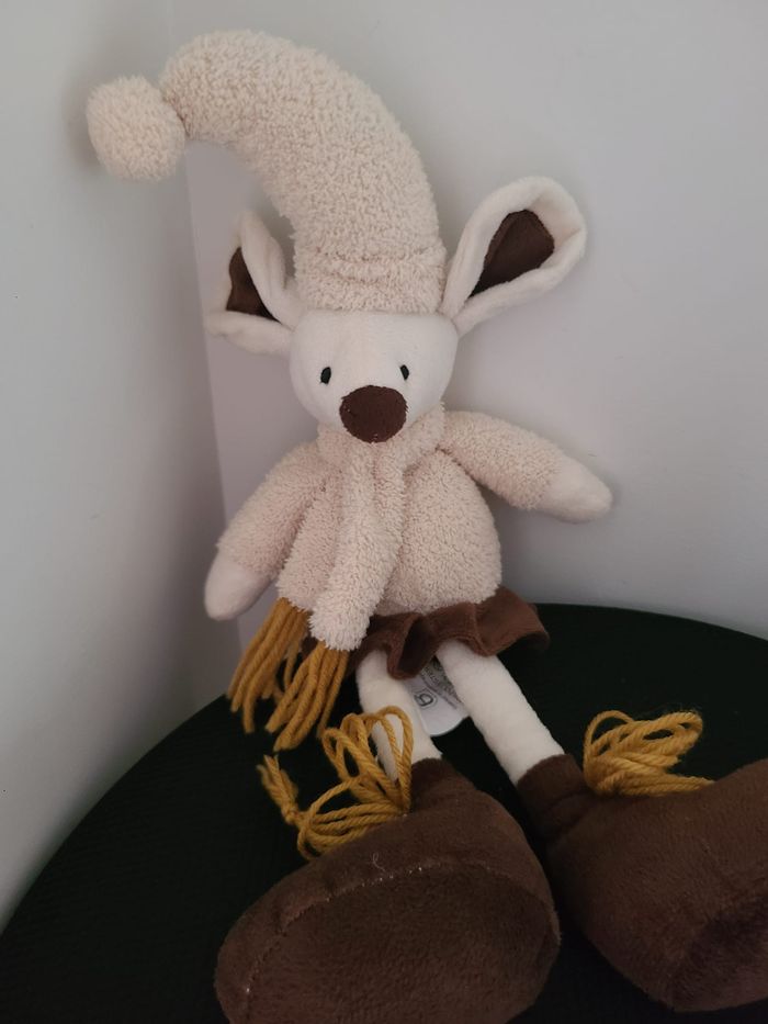 Peluche doudou souris PLEIN NORD B blanche et marron a chapeau - photo numéro 1