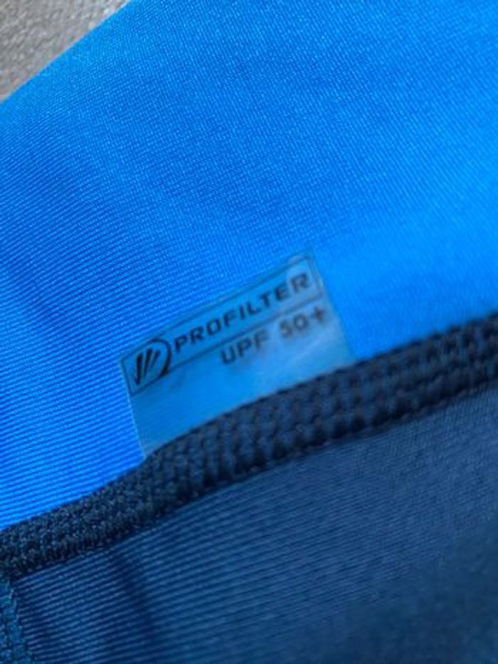 T-shirt nautique plongée manches courtes neuf profilter anti UV 50+ Bleu marine et bleu taille S 88-91 cm 91% polyester 9% elasthane Tribord Decathlon