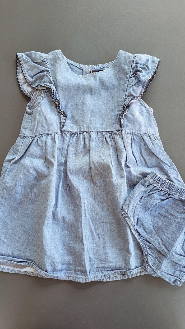 Robe en jean kiabi 18mois avec sa culotte bloomer. Bleu (un peu plus foncé que la photo)