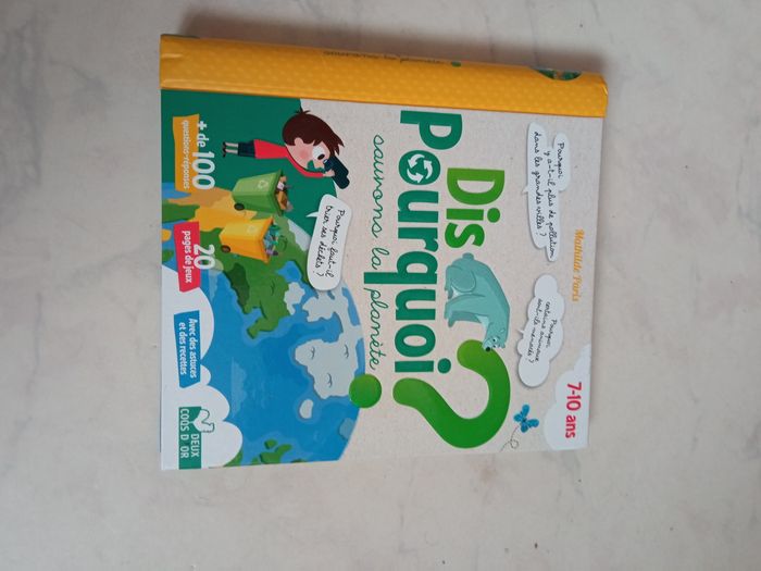 Vends un livre éducatif de la collection dis pourquoi à 8 euros Contient des questions réponses sur le thème sauvons la planète Des recettes et des jeux Certains jeux sont déjà commencé voir photos