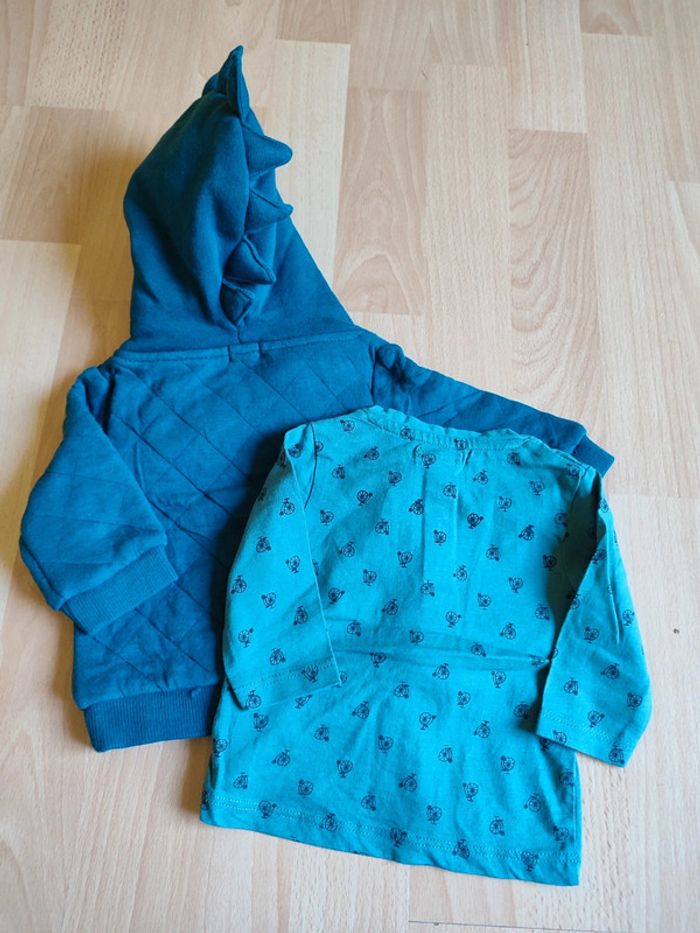 Lot Neuf Sweat à capuche molletonné + t-shirt manches longues Kiabi en 1M - photo numéro 1