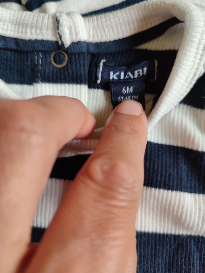Lot neuf sweat Vertbaudet + t-shirt manches longues + débardeur Kiabi rayés marine et blanc en 6M - photo numéro 2