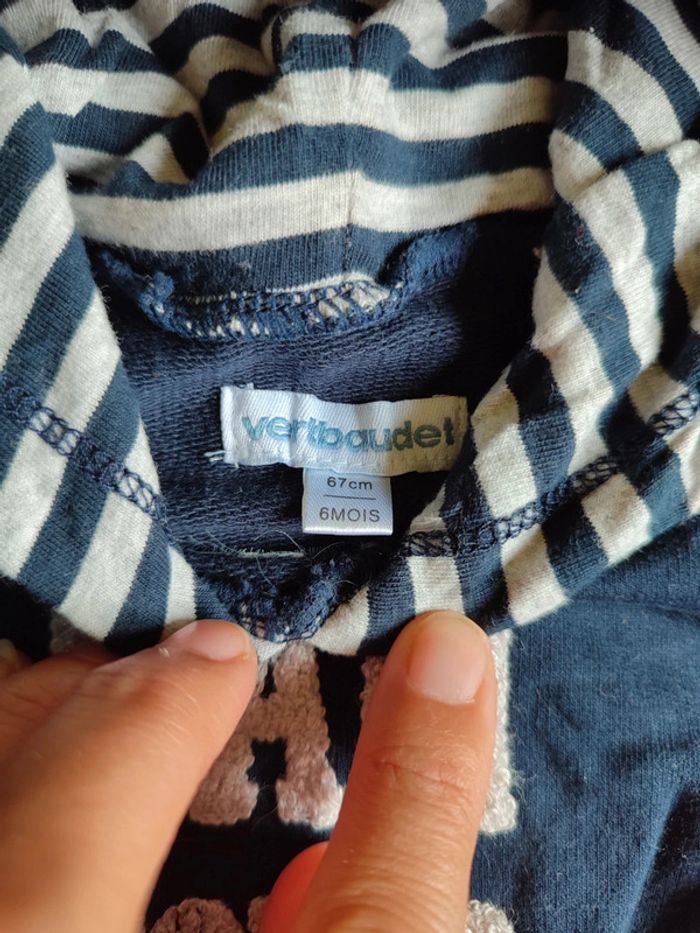 Lot neuf sweat Vertbaudet + t-shirt manches longues + débardeur Kiabi rayés marine et blanc en 6M - photo numéro 6