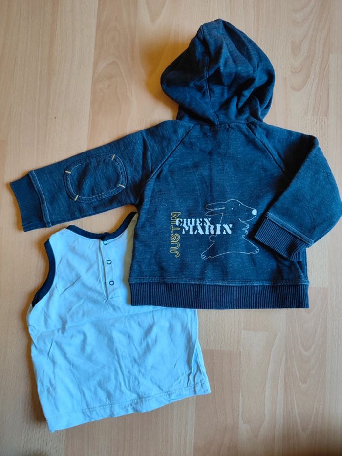 Lot sweat zippé à capuche Mini Jungle et débardeur Twiddy en 9M - photo numéro 1