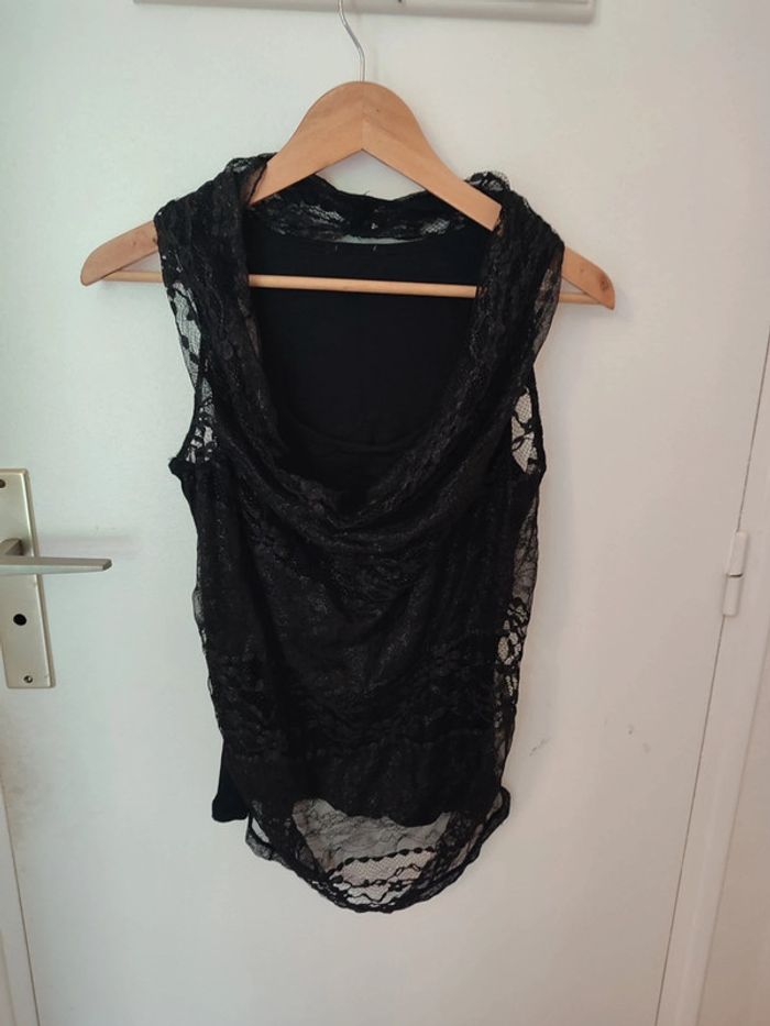 Débardeur noir pailleté avec dentelle devant en M Pimkie - photo numéro 1