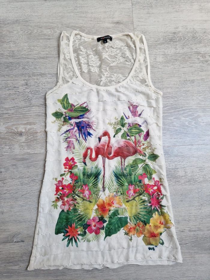 Débardeur Morgan XS écru flamant rose et dentelle - photo numéro 1