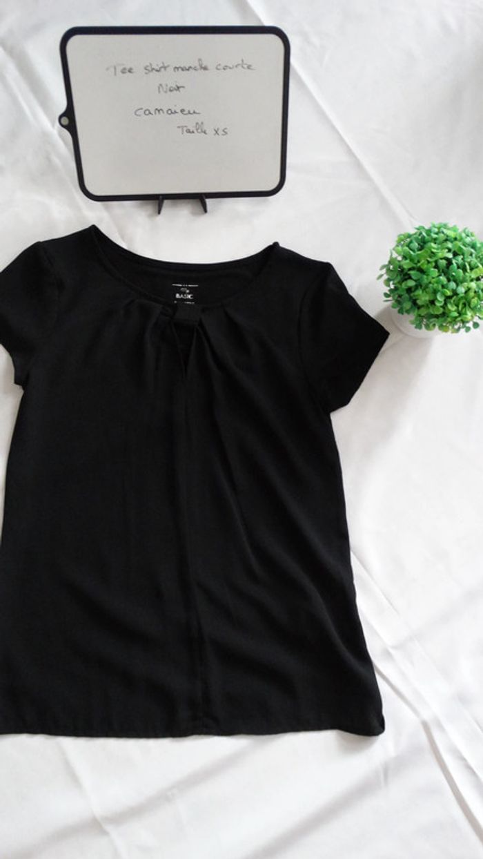 Tee shirt noir col rond Camaieu Taille XS