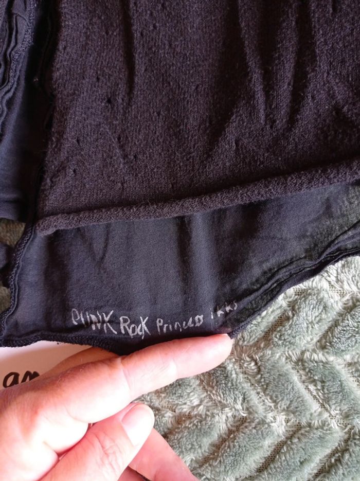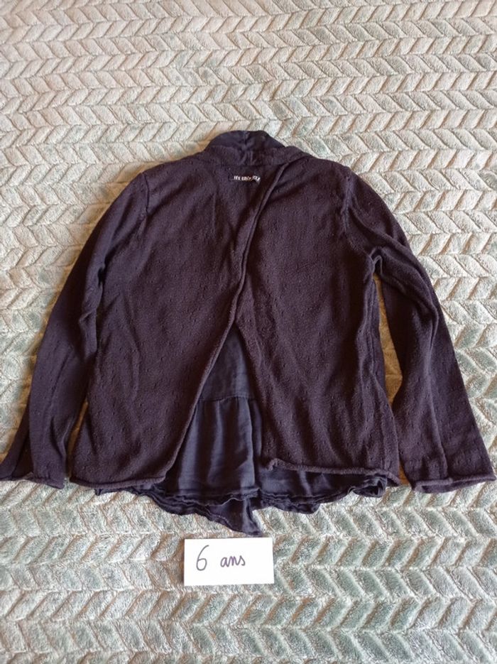 Gilet 2 en 1. Manches évasées. Fermé par 2 boutons devant. Fente dans le dos. Inscription "punk rock princess IKKS" #nanoukou_fille_6ans