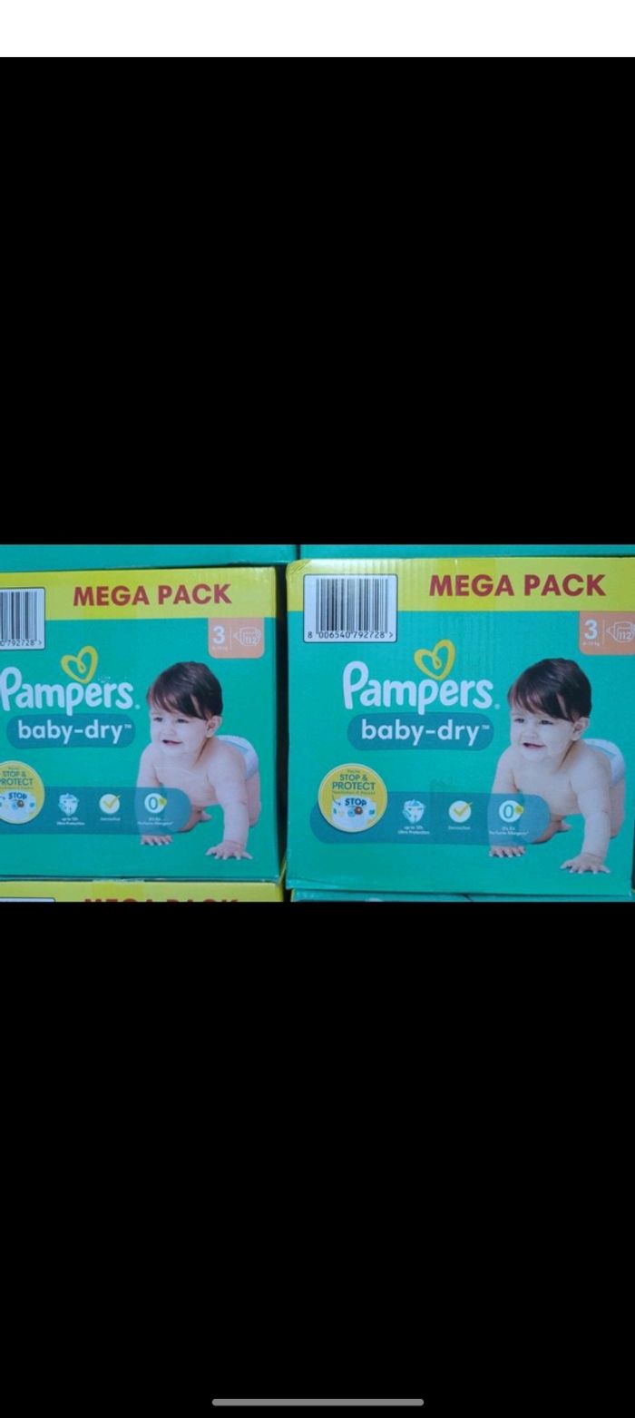 2 méga packs Pampers baby dry taille 3. Total de 224 couches. Prix ferme