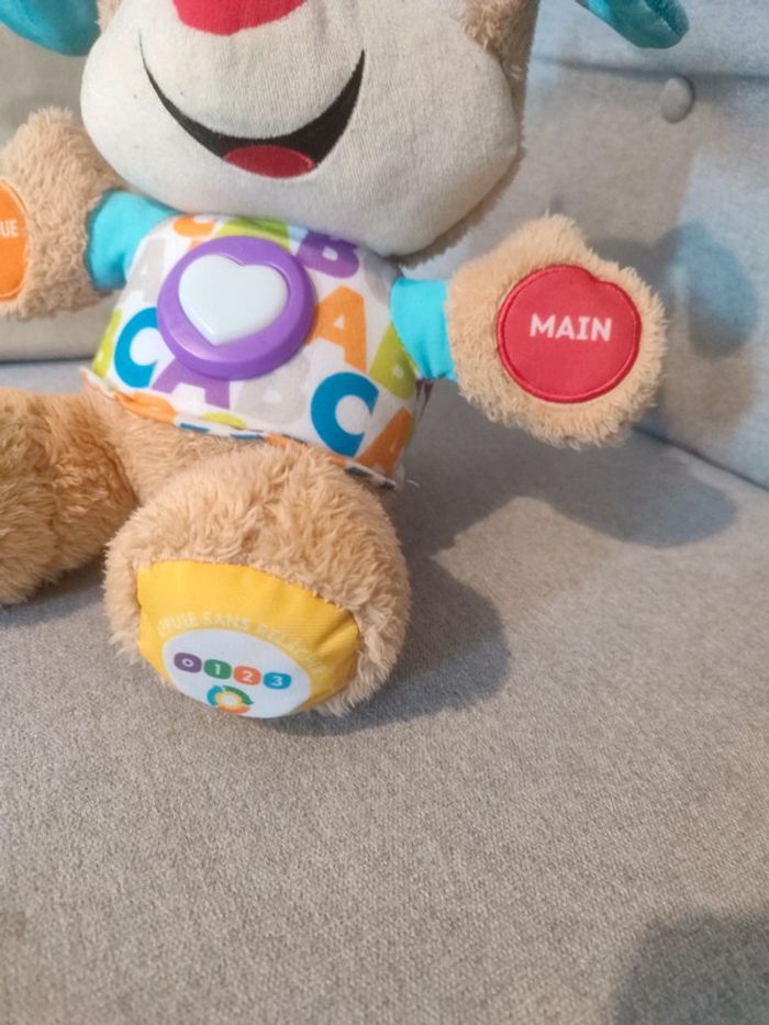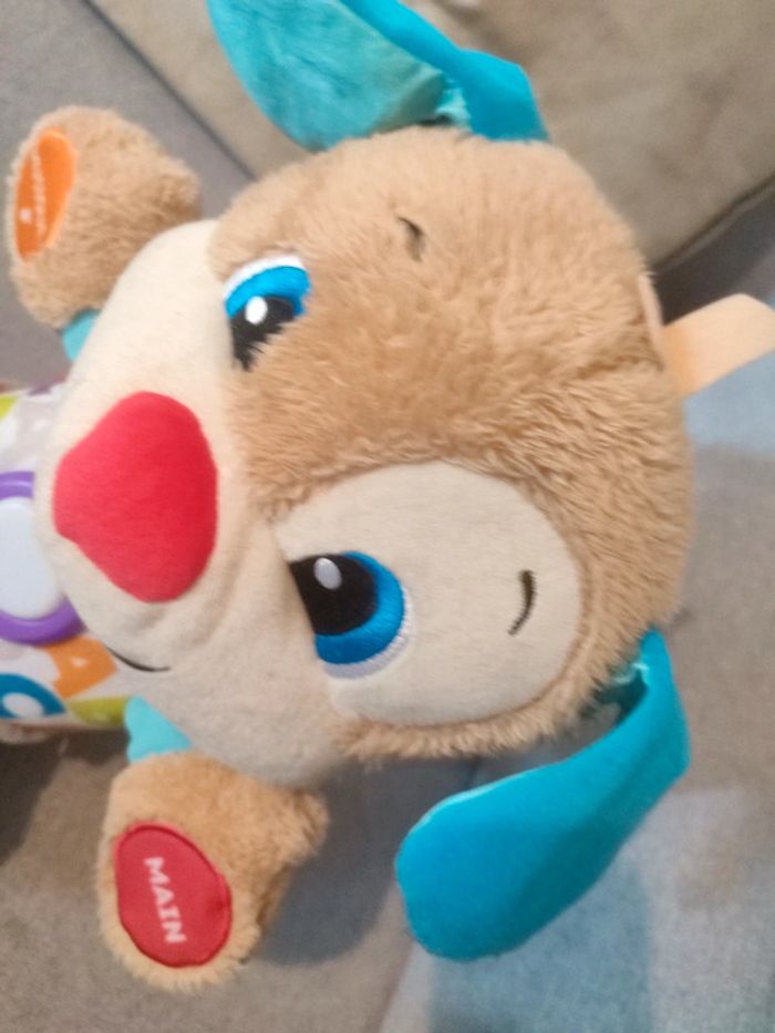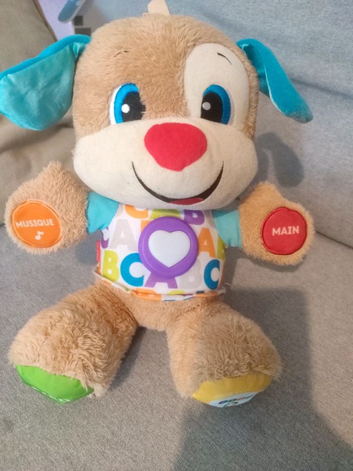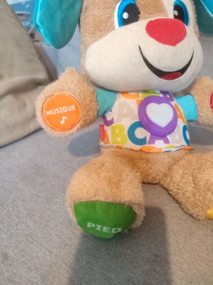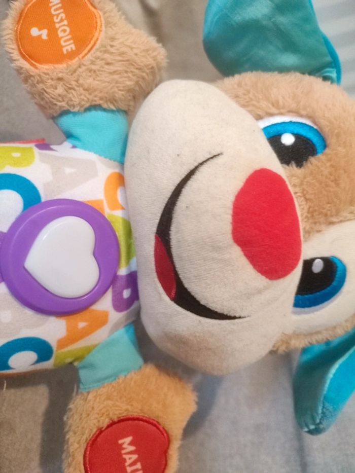 En très bon état général, les piles fonctionnent encore - acheté 35 euros environ #chienmusicalfisherprice #peluchemusicale #jouetmusical #chienmusical #jeudeveil #fisherprice bébé les touche (5 activations en tout), ce qui permet de stimuler considérablement son développement sensoriel et ses capacités de motricité fine 3 niveaux d'apprentissage Éveil Progressif pour évoluer avec bébé Plus de 75 chansons, mélodies, phrases et sons divertissants dans les