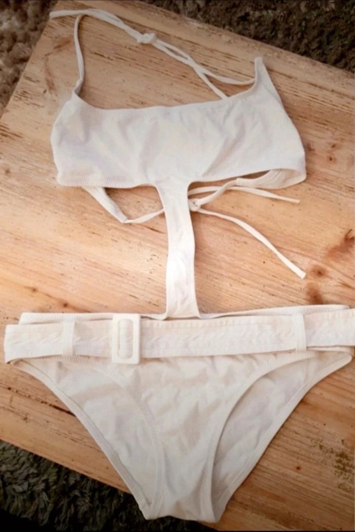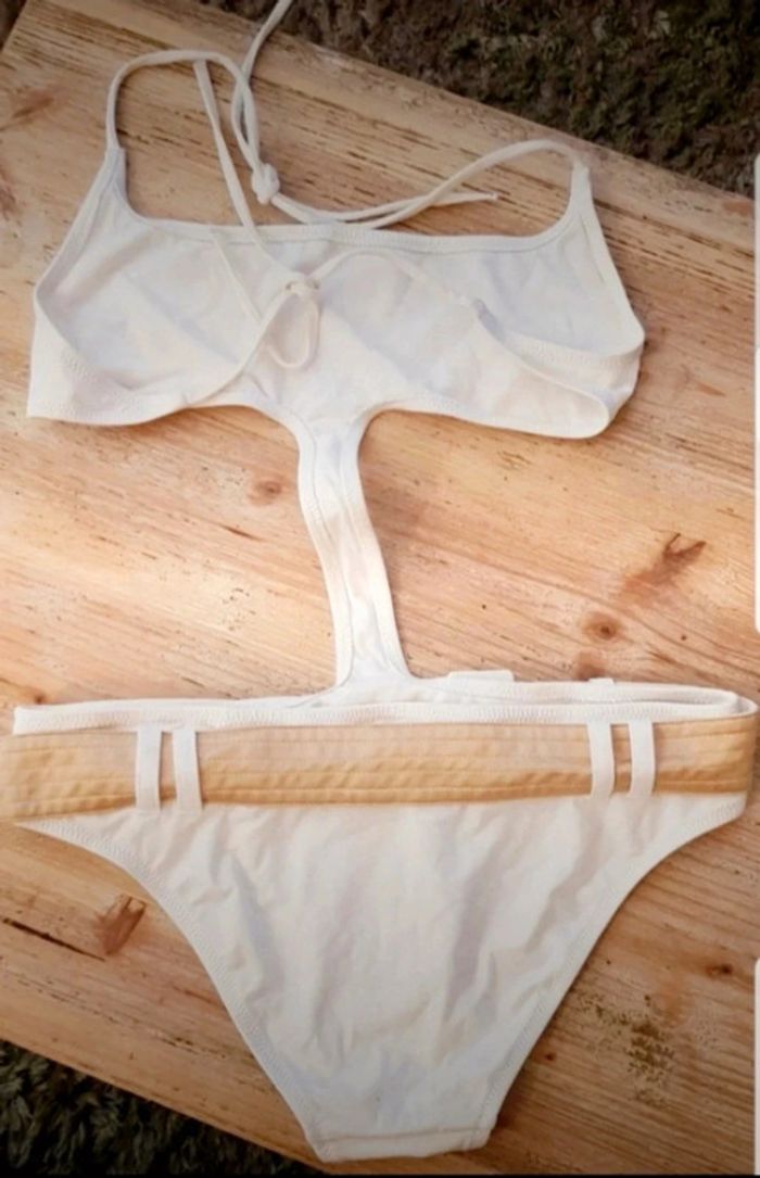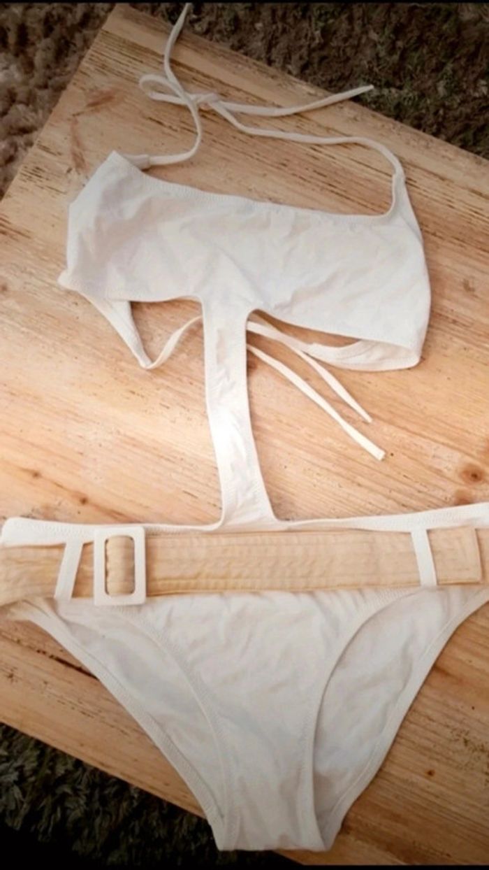Maillot de bain 1 pièce blanc avec ceinture boucle réversible blanc/doré Taille 40 Très bon état, aucun défaut #cinedayFemme