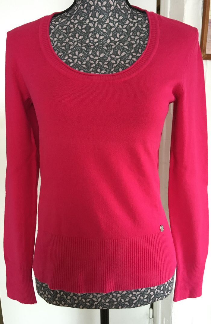 Pull fin rose, décolleté arrondi, manches longues, Taille 38 Longueur dos 58 cm, largeur épaules à épaules 38 cm, largeur aisselles à aisselles 41 cm Les réductions à partir de 2 articles sont activées