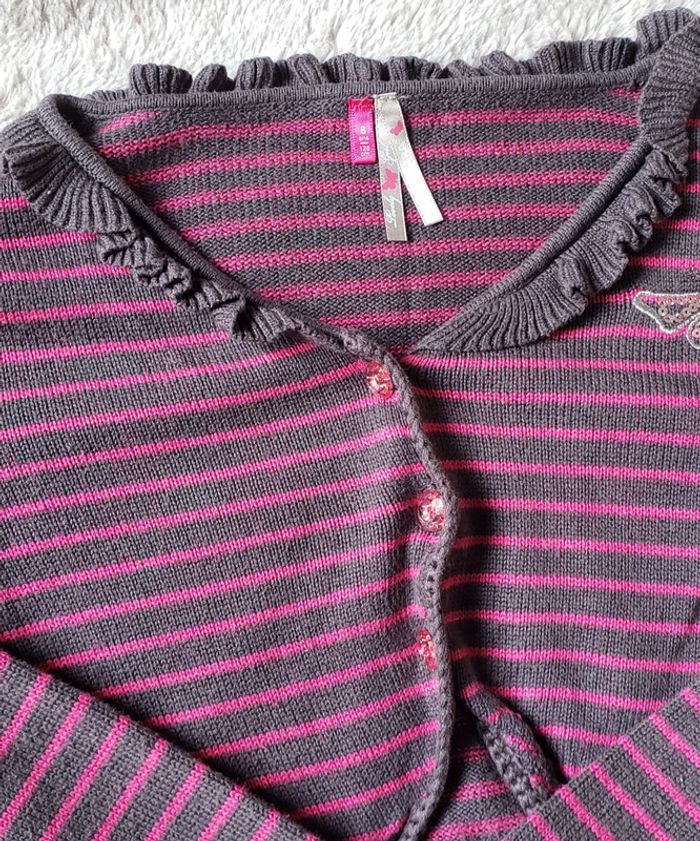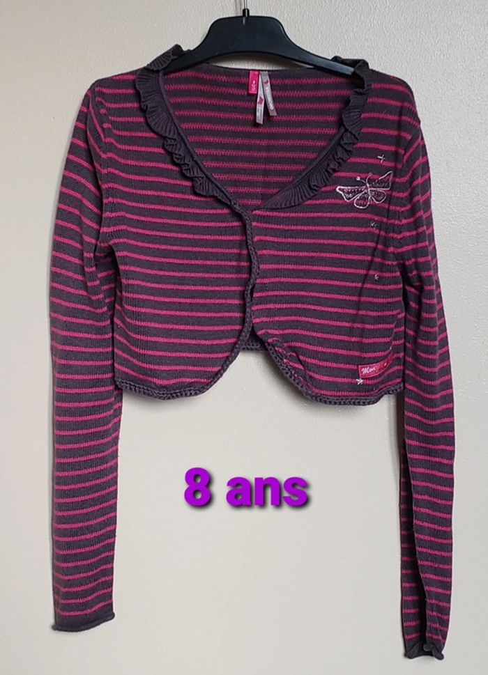 Très bon état (voir photos) 🎨 Couleur : gris foncé et rose 💫 Pour voir tous mes articles en taille 8 ans : #fannyfannou60_fille_8ans #fille8ans #rayureshorizontales #bolero #papillon #orchestra