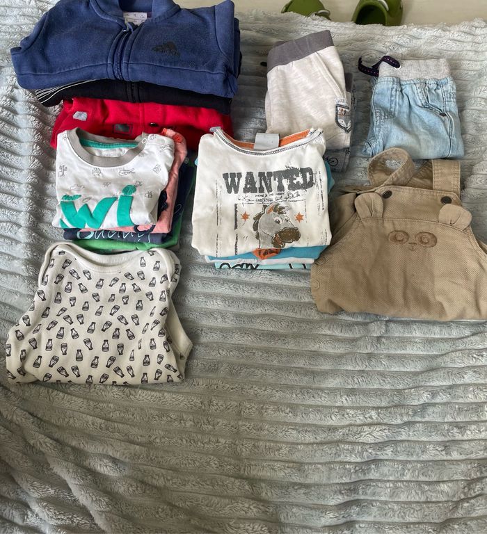 Le lot comporte : 3 veste en 3 mois. 1 veste en 9 mois 5 t-shirt manche courte 3 mois 4 t-shirt manche courte 6 mois 1 salopette short en 3 mois 1 jean en 3 mois 2 jogging en 3 mois 1 bodies en 3 mois Tout sera lavé avant envoi.🧼 Pour + de photo demandez moi😉 Envoi sous 24h-48h🚛