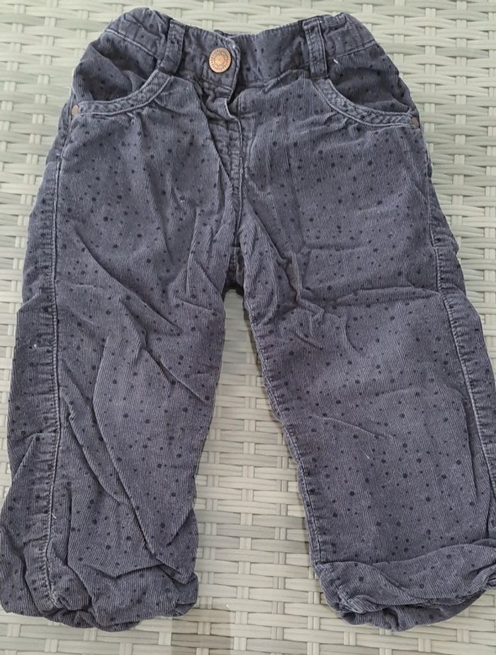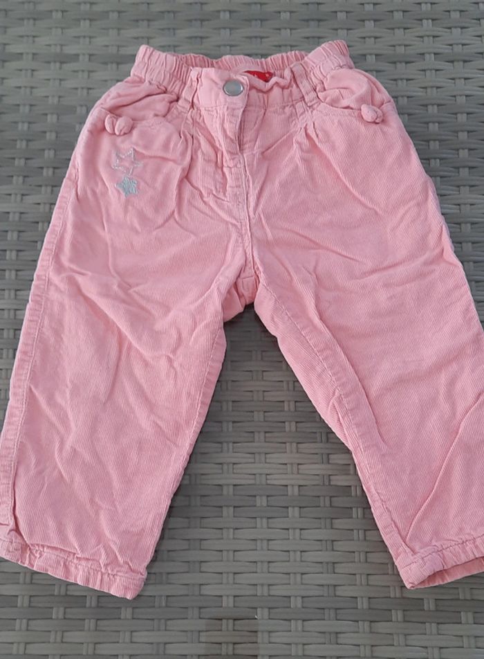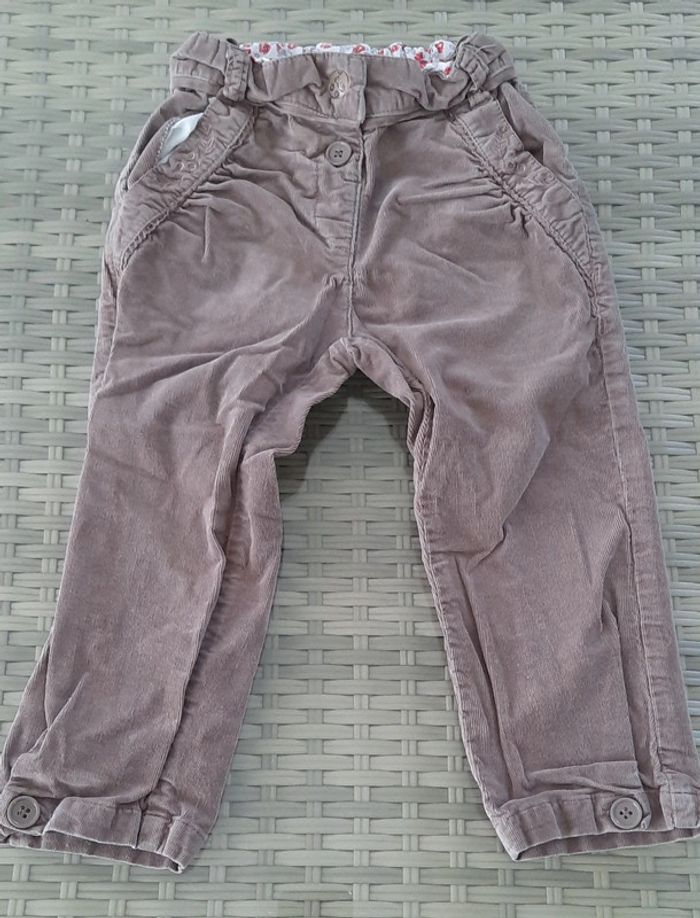 3 pantalons en velours 23 mois, avec système élastique pour resserrer à la taille sauf le rose.