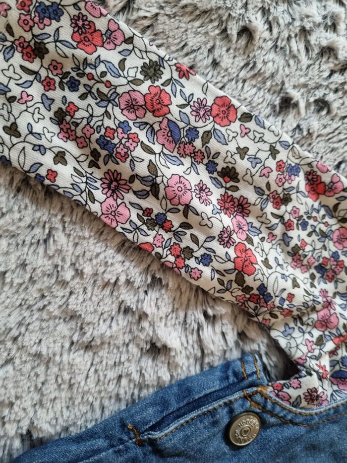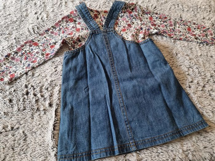 ensemble robe en jeans avec dessin brodé et blouse fleurie style liberty 12 mois peu porté