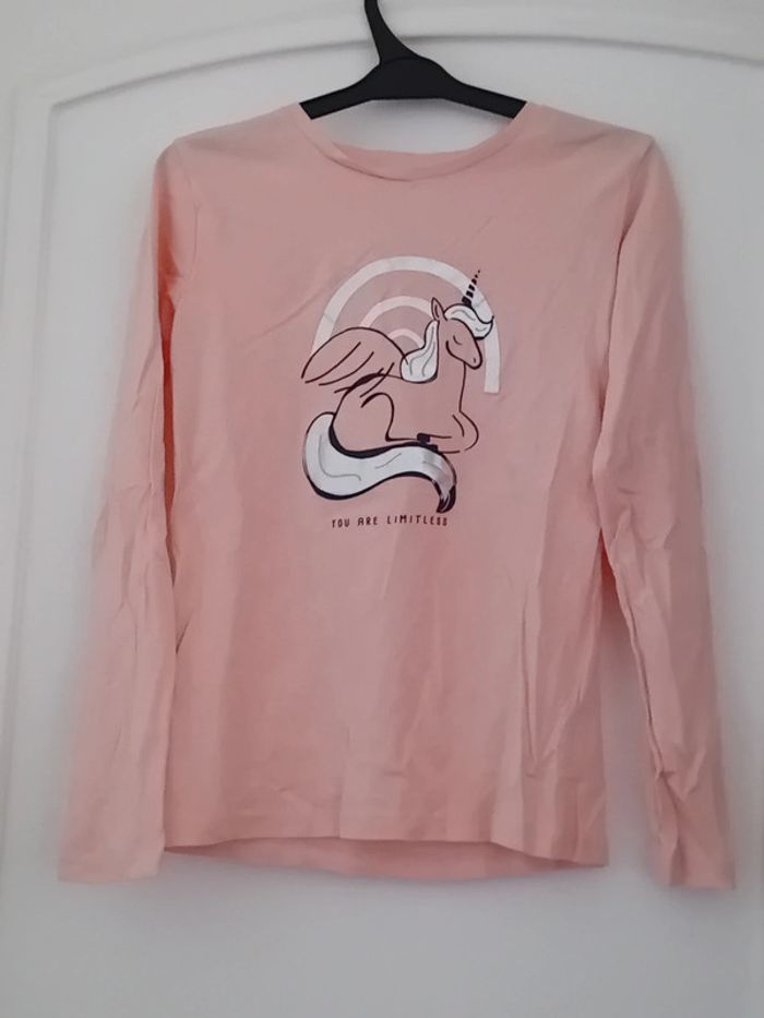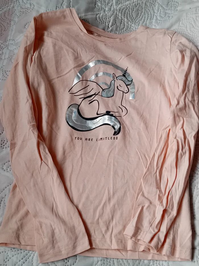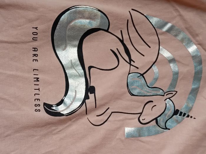 Tee shirt manches longues en coton léger motif licorne avec paillettes longueur 46 cm largeur aisselles à aisselles 33 cm largeur épaules 30 cm longueur manches 43 cm juste porté une ou deux fois en très bon état n hésitez pas à faire un lot dans mon dressing pour bénéficier d une réduction #midoleenfant #midole #midolefille10ans #teeshirt #teeshirtlicorne #gemo #rose #licorne #fille10ans #paillettes