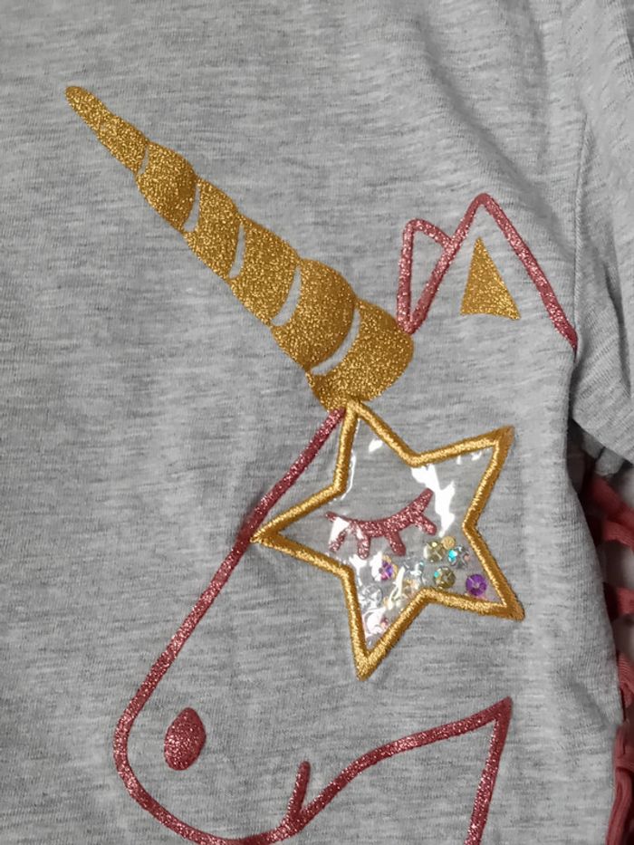 Tee-shirt licorne paillettes et sequins gris fille 10 ans kiabi - photo numéro 5