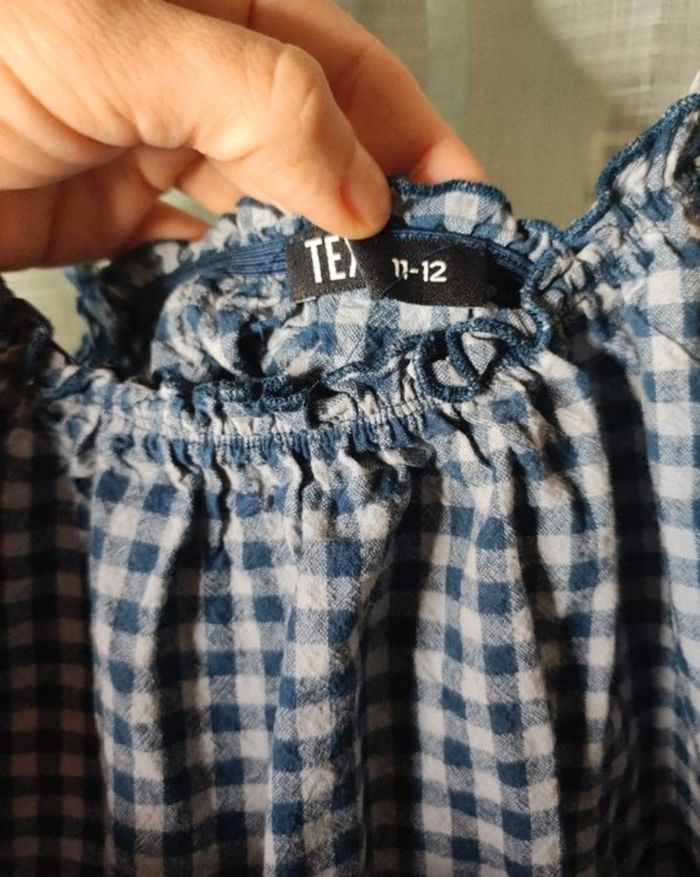 Mini robe ( qui était a la base accompagné d'un pull) de chez tex en taille 11-12 ans. Avec bretelles réglables motifs a carreaux. Jamais porter