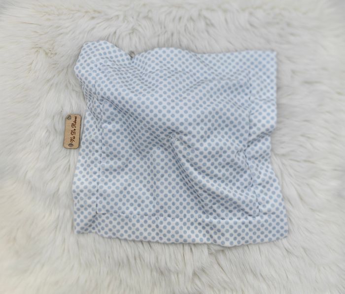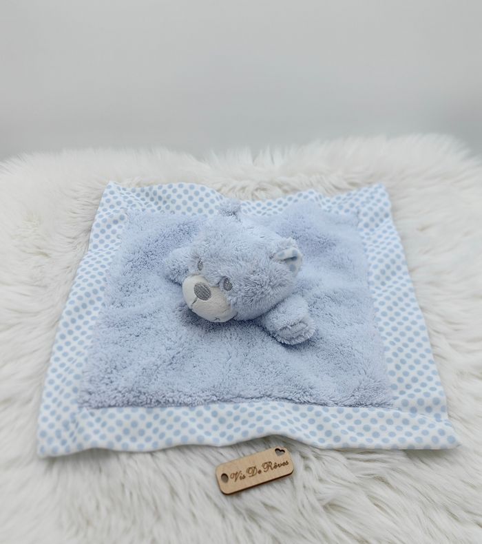 Doudou carré Plat Ours Bleu clair Contour pois blanc bleu - photo numéro 1