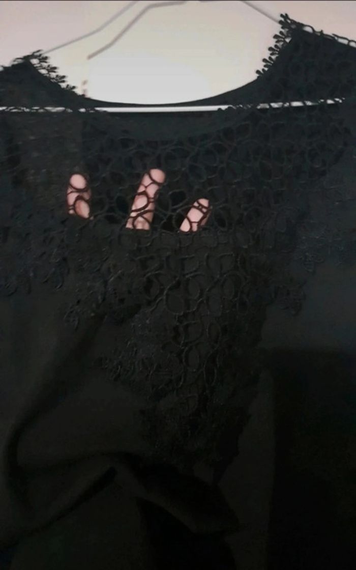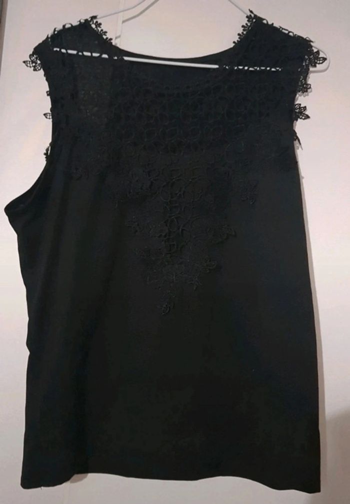 🌺🌺Bonjour 🌺🌺 👇👇👇 magnifique haut noir travaillé de dentelle sur le devant voir photos correspond à une taille L très proche du neuf
