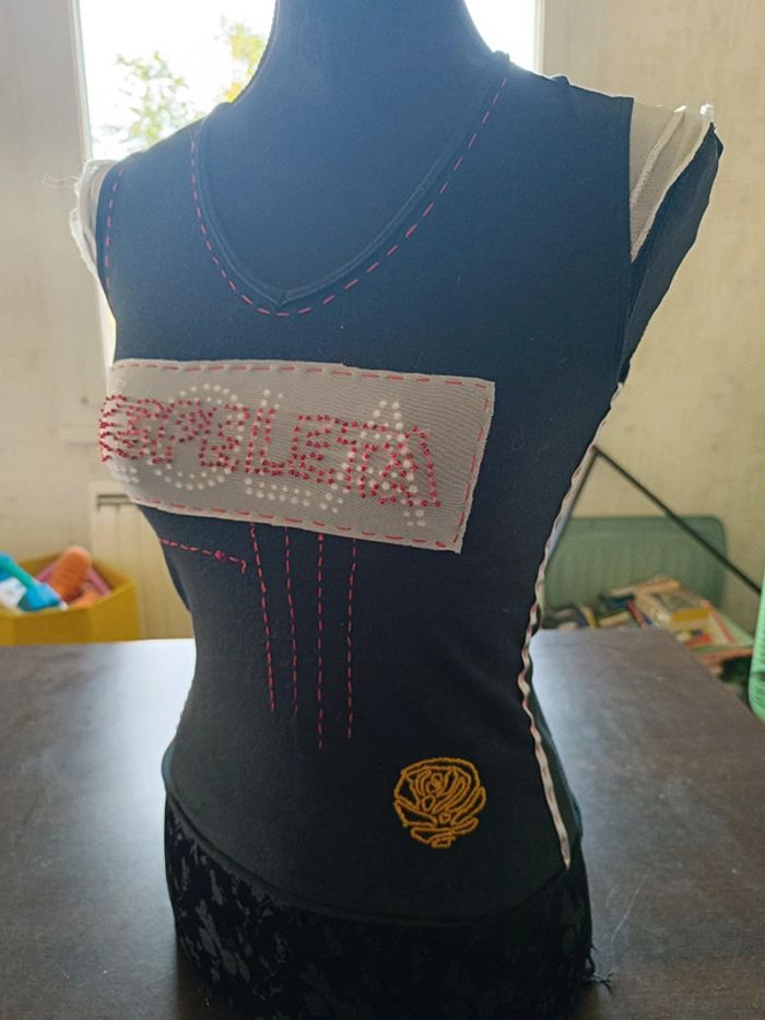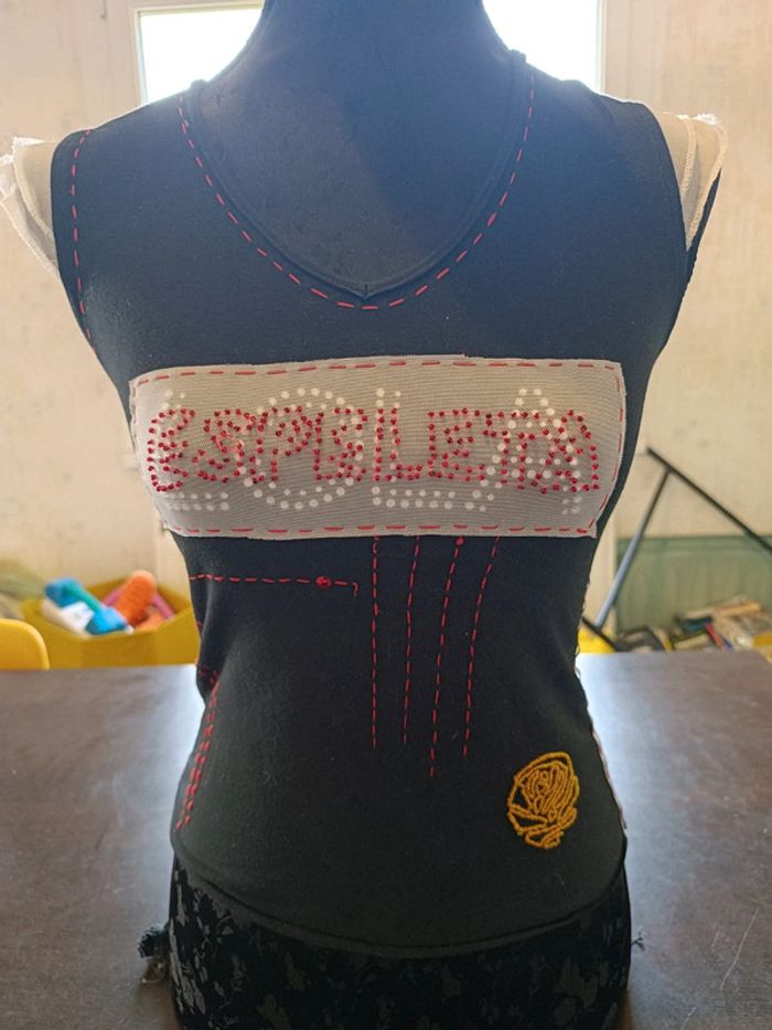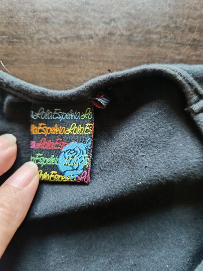 Tee shirt LOLA ESPELETA Noir avec nombreuses applications colorées Petits mancherons volantés blanc 95% Coton & 5% Spandex TAILLE 12 ANS TRES BON ETAT Allez voir mes autres ventes!