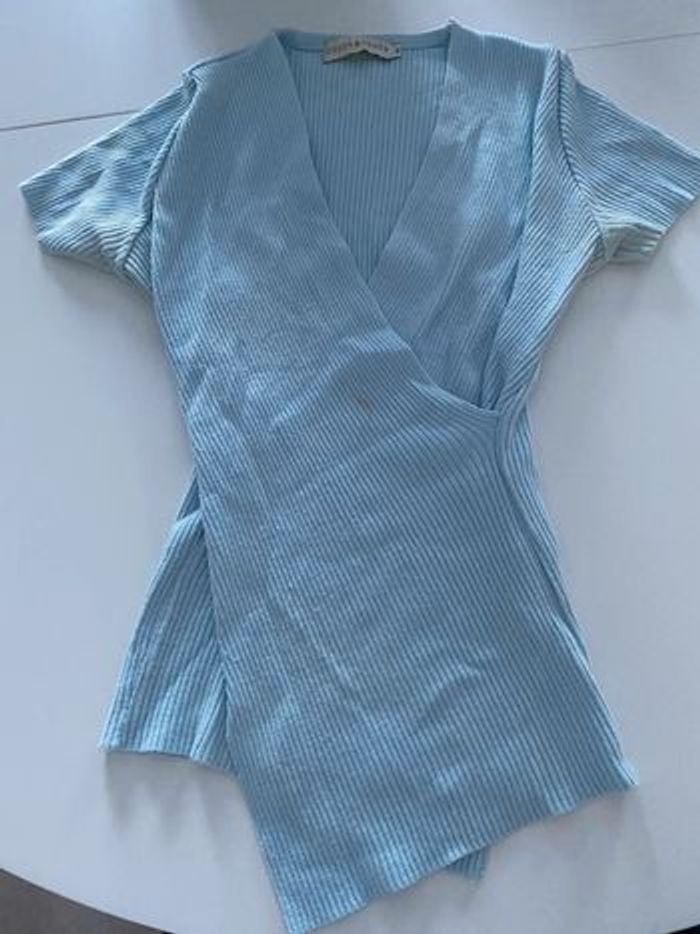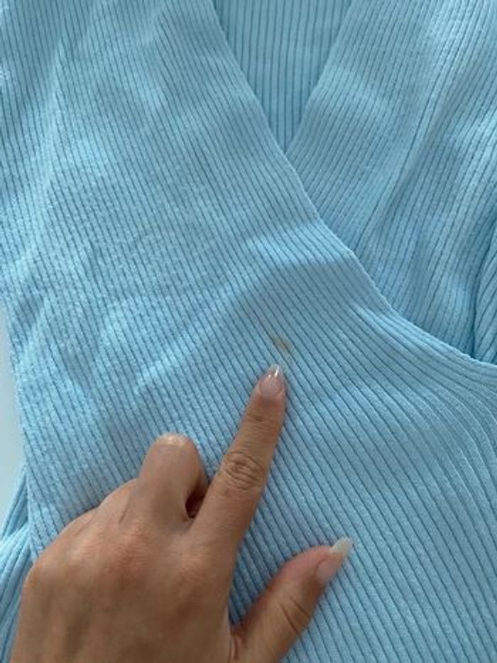 Tee-shirt cache coeur, bleu ciel. Une petite tache (voir photo 3)