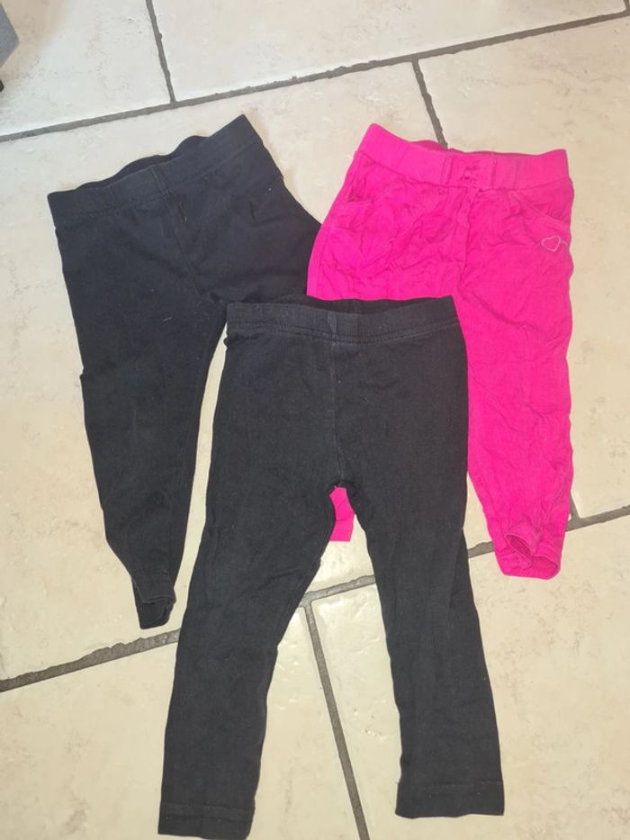3 leggings taille 12-18 mois 2 noirs en état satisfaisant la couleur est un peu passé marque youg dimension 1 rose en très bon état Marque orchestra
