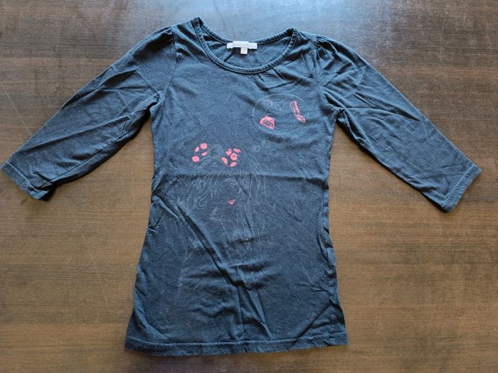 Haut U COLLECTION Noir Impression grise & rouge sur le devant Manches arrivant sous le coude 100% Coton TAILLE XS TRES BON ETAT Allez voir mes autres ventes!
