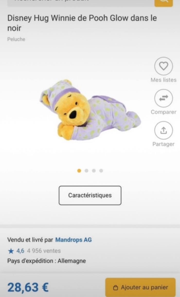Peluche Winnie l’ourson qui s’illumine dans le noir