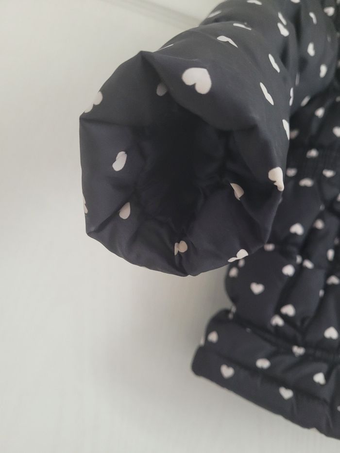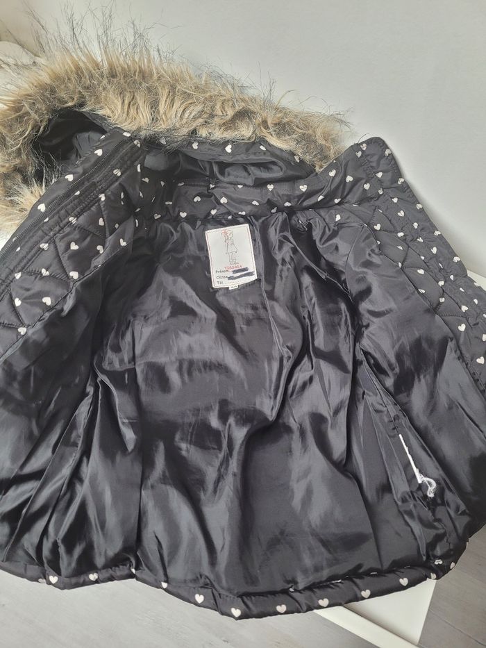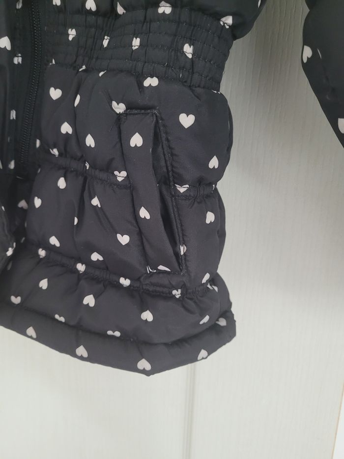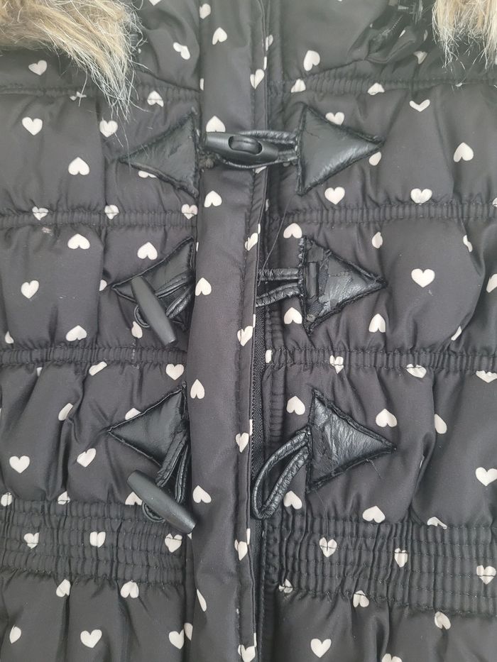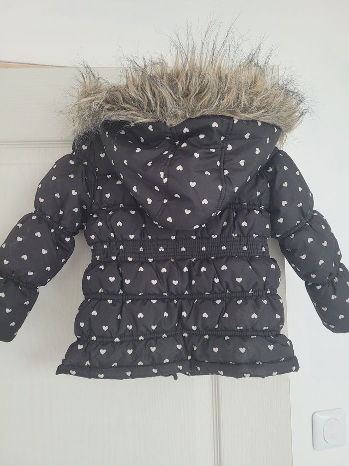 Très bon état !! Fermeture zip+ boutons en bois Cintrée à la taille Capuche amovible+ 2 poches devant Motifs petits cœurs Taille 3 ans