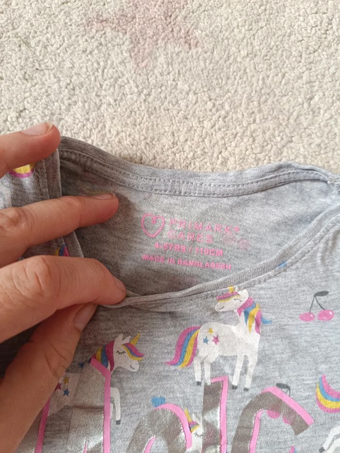 Tee shirt chemise manches courtes Fille 4/5 ans Magic Licorne cerises Primark