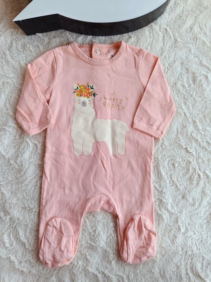 Pyjama été léger Fille 1 mois Lama Happy party Kiabi Eco conception 100% coton bio - photo numéro 1
