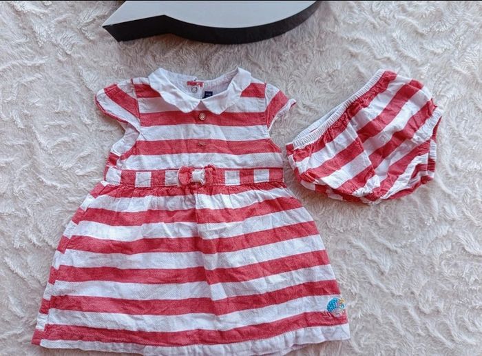 Ensemble (robe + bommer assorti) rayures Fille 6 mois Sergent major 100% coton - photo numéro 1