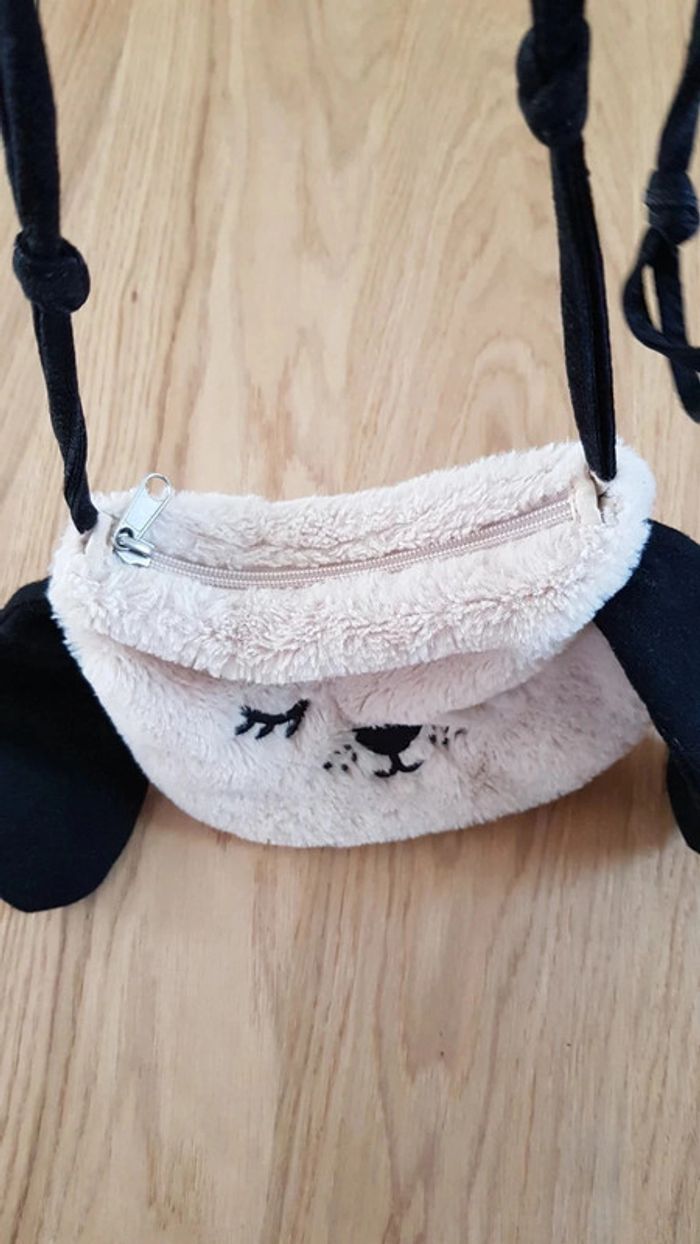 Sac fille en forme de tête de chien avec les longues oreilles, tout doux, se ferme avec une fermeture éclair, parfait état