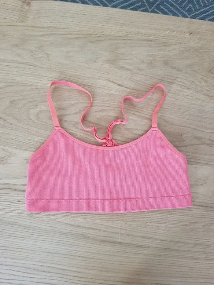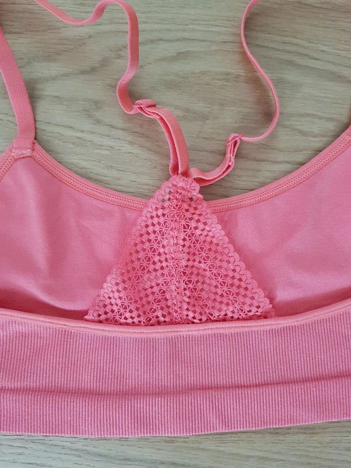 Brassière couleur corail, de la marque Etam, taille L, elle est neuve car trop grande pour moi