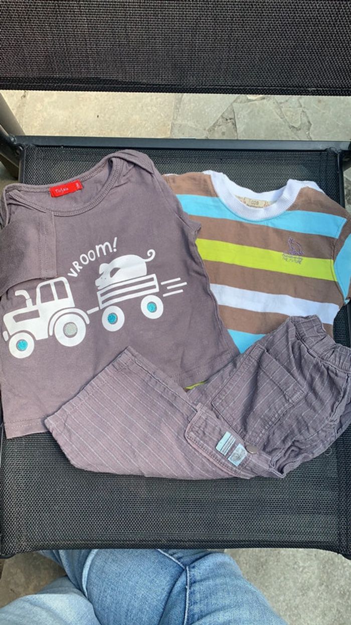 Lot composé d’un pantalon léger + 1 tee-shirts manches longues + 1 tee-shirts manches courtes. 12 mois