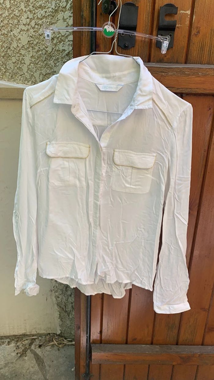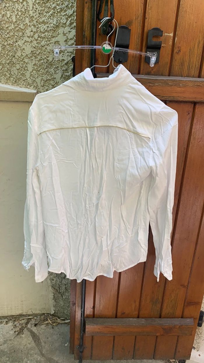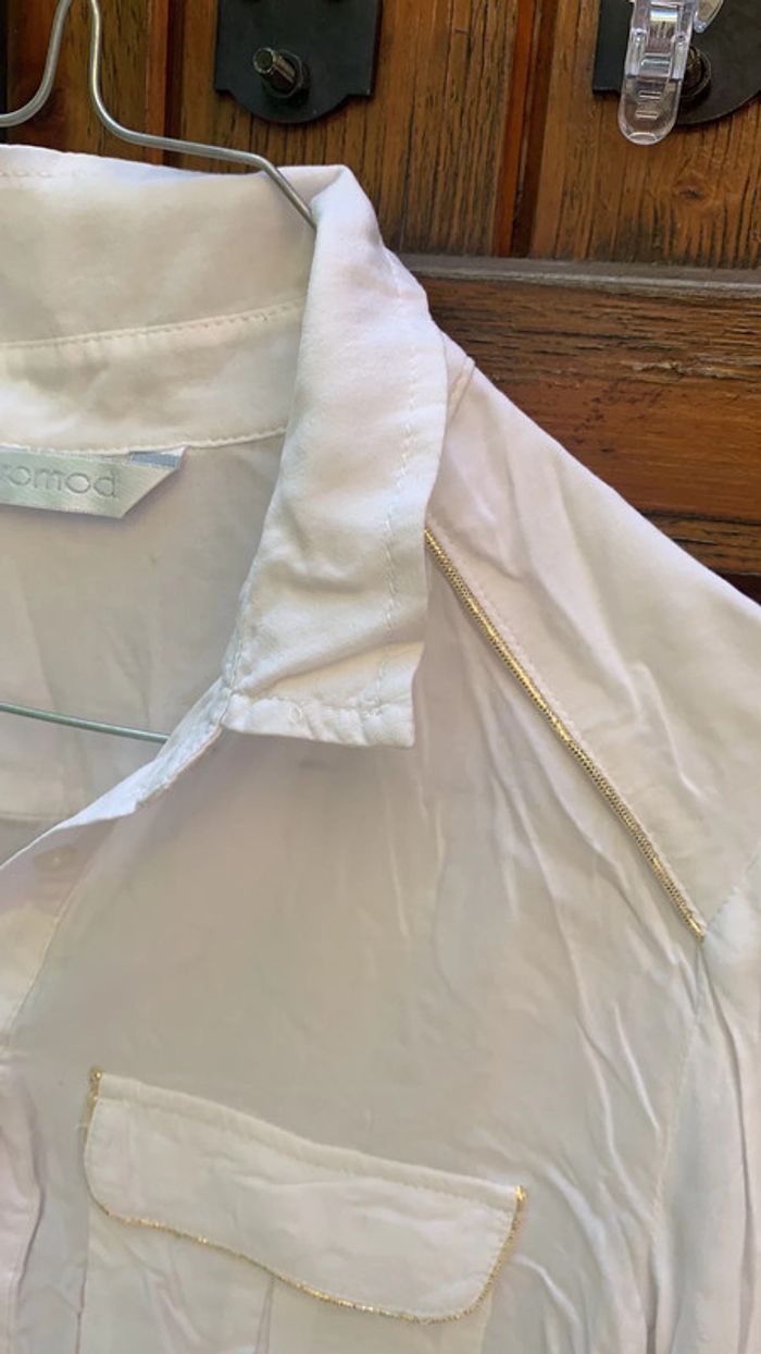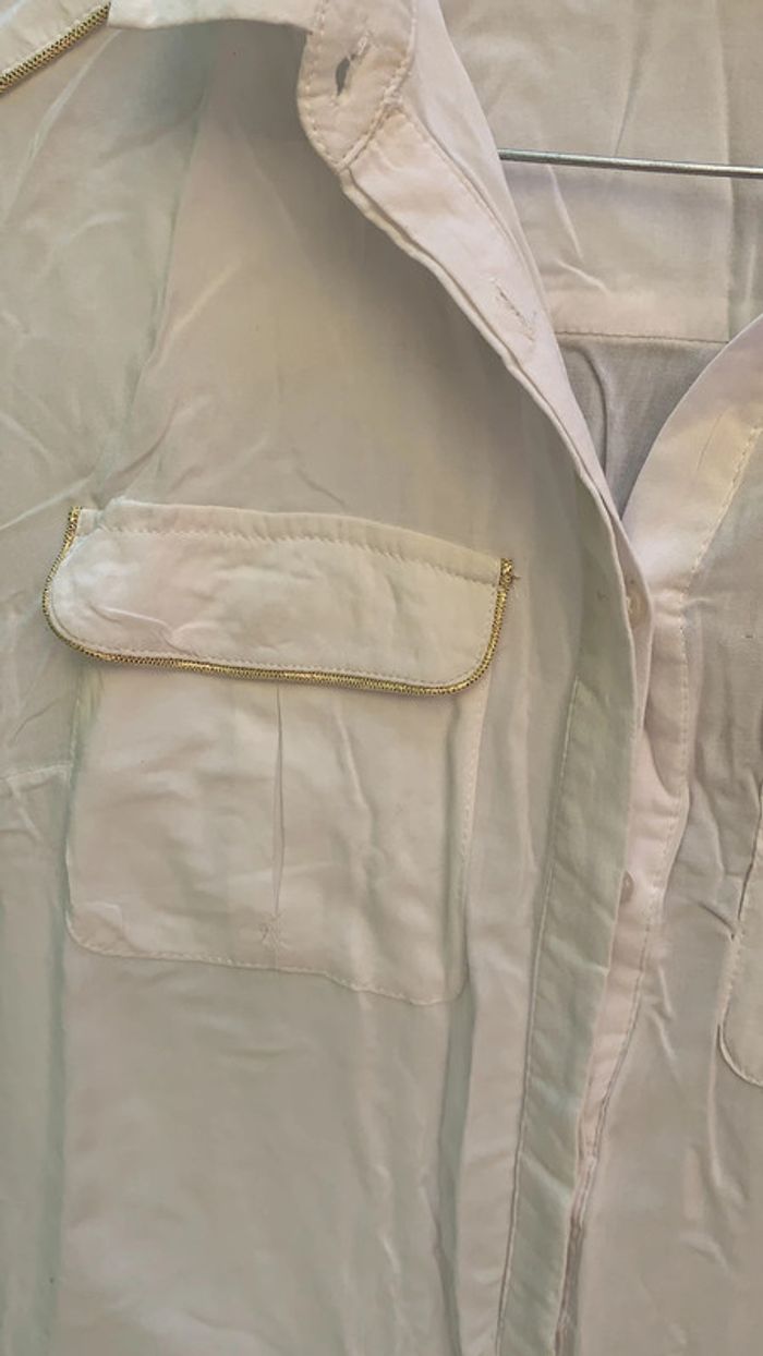 Joli chemisier léger blanc liserés dorés Petite tache dans le dos -> voir photo 36